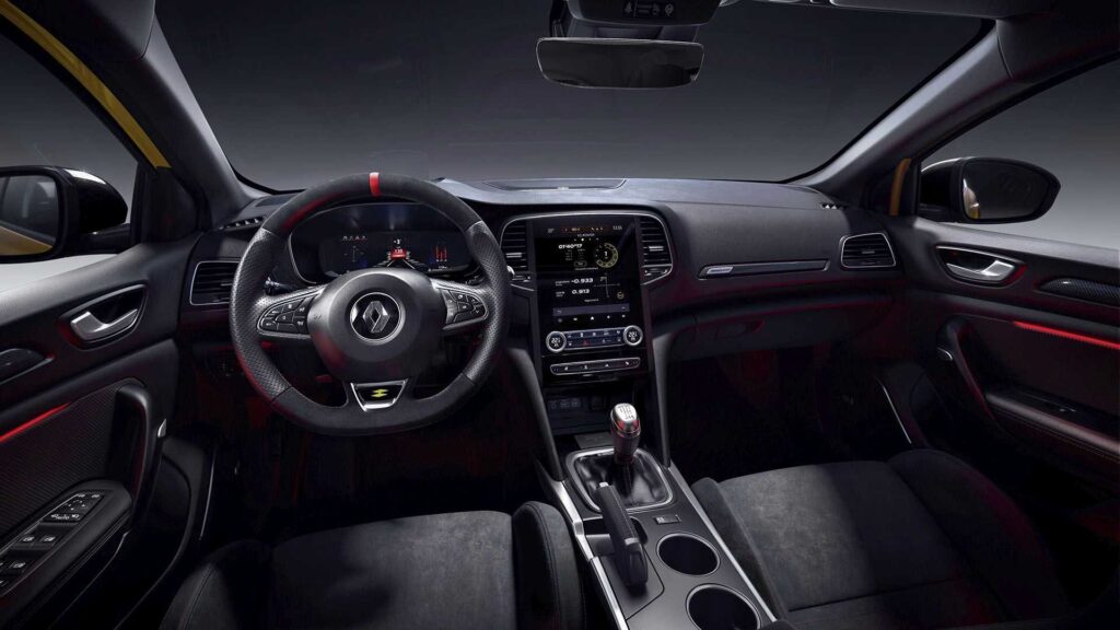 Inside, the standard fittings include Recaro bucket seats with titanium black Alcantara upholstery and an embroidered R.S. monogram. The door sills are exclusive, and every model has its very own numbered metal plate near the transmission controls, at the bottom of the console, signed by Laurent Hurgon, the driver and development expert who worked on Megane R.S. throughout its career and currently holds the Nürburgring, Suzuka, and Spa-Francorchamps records.