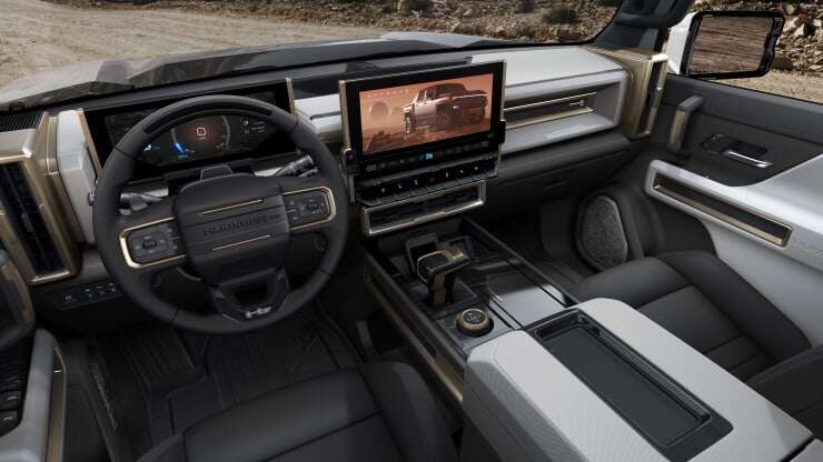 The design is pretty much exactly how you would expect a futuristic Hummer to look like but on the inside, we do see two screens one for the driver and one that controls the infotainment. The roof of the new GMC Hummer is also detachable and it is split in four so if one out of four people in the car does not one the roof off they can keep it on.