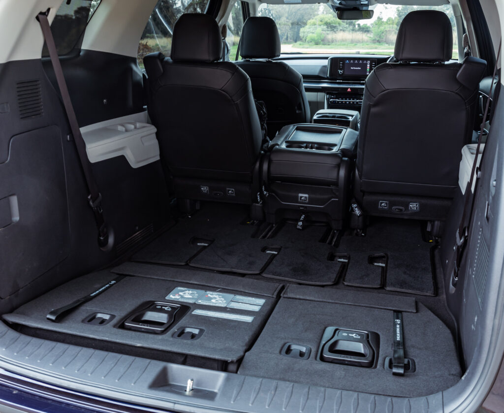 Moving on to practicality, we’ll tell you one thing – this thing is massive. There’s plenty of space for all 8 passengers including the third row. Boot space comes in at a decent 627 litres with all seats up, with the third row folded down, you get an impressive 2785 litres. Other practical features include 7 USB ports, nine cup holders, and reverse camera to assist park the large people mover.