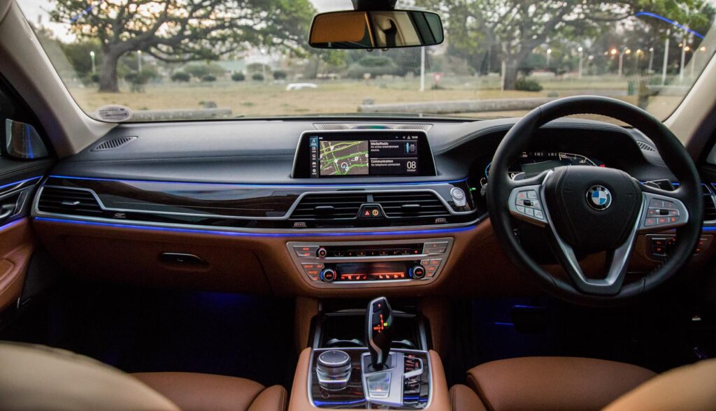 The interior is luxurious, every panel is covered in high quality materials. Nothing in the car feels cheap or flimsy, its a superbly well put together cabin. It features a new digital instrument cluster and BMW’s latest iDrive system which we can’t stress how intuitive and easy it is to use. Like on all new BMW models it features wireless Apple CarPlay. The options list is plentiful and so is standard equipment. Our test unit was fitted with Panorama Glass Sky Lounge, BMW Laser lights, Bowers & Wilkins Diamond surround sound system just to mention a few. Standard models are equipped with Harmon/kardon sound system, soft close doors, wireless phone charger, sun blinds, and display key. BMW SA only offers the 7 Series in long wheel base form. Rear occupants are greeted with plenty of legroom, comfortable leather seats and rear entertainment screens. Our one complaint about the cabin is the gear shift knob, BMW could have used a more classier one, it just looks bland.