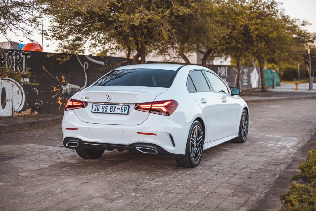 The A-Class is longer, and fractionally taller than its hatchback sibling. It’s quite a looker with our test unit finished in Polar White and fitted with the optional Night Package which comprises of high gloss black elements like the black side view mirrors. With two trim levels, Progressive and AMG Line, ours was fitted with the latter. We love the AMG line’s sporty look which comprises of lowered comfort suspension, AMG body styling, sports seats, and AMG floor mats. Compared to its bigger sibling the CLA, we think the A-Class sedan looks better.