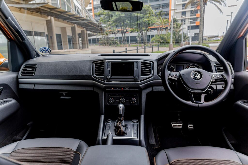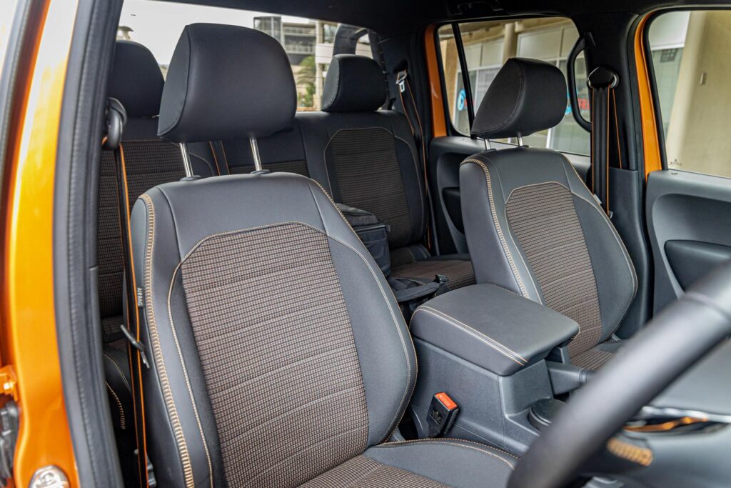Despite the Amarok’s age, the cabin is still quite good. Set to Canyon specification it comes standard with Canyon edition trim covers, black roof lining, leather seats with orange seams, and pedal caps in stainless steel. The Canyon utilizes VW’s Discover Media infotainment system that supports Apple CarPlay and Android Auto. The touchscreen is on the bit of the little side and would look greater if it was a bit bigger. The cabin is spacious and practical (besides the center console which only looks big but is actually little). It has four 12V sockets but only one USB port. The door bins are nice and big and easily fit your usual 1.5-litre bottle. The load bin can actually fit a full-size pallet, I’ve seen @lawrence_nzama_ from @imotomedia do it, very practical.