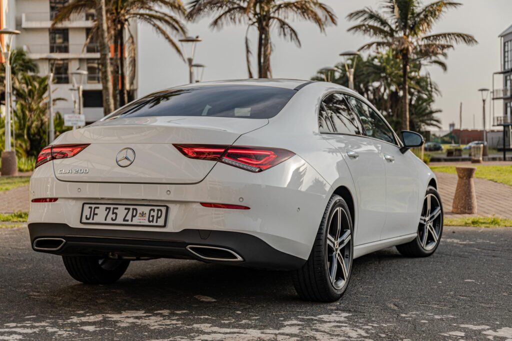 Inside its not as fancy as the A200 sedan we drove. To get it looking all blinged up it has to be optioned out which see’s it entering C-Class territory. Coming standard with MBUX infotainment system with Apple CarPlay and Android Auto, our test unit had to make do with a smaller instrument cluster which can be specced with a bigger 10.25-inch screen (R7900 option). We enjoyed the optional 10.25-inch touch display, its crisp and sharp. The optional sports seats are comfy and supportive. Rear headroom takes a bit of a knock due to its low roof line, its a sacrifice one has to make for style. Overall the interior looks of the CLA is solid just like the A-Class sedan.