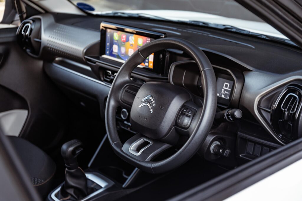 Piloting the new C3 is where things improve slightly. While the engine has a low-end grumble, it marginally quietens up at speed and there’s a decent sense of refinement overall – especially when compared to cars at this price point and below. Fuel consumption is solid at 5.4l/100kms (Citroën claims 5.6l/100kms) and will only increase a tad when pushed. Considering that it is powered by a 3-cylinder, 1.2 petrol engine that has an output of 61kW/115Nm – power is okay, but things can get a little rough when pushed. Other positives include Android Auto and Apple CarPlay, an option of 10 exterior colours, 2 interior options and a relatively comfortable drive.